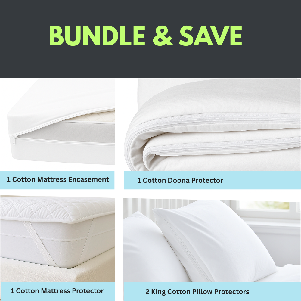 100% Cotton Dust Mite Protection Bundle | Mattress & Pillow Protectors | 35 cm Depth | All Sizes