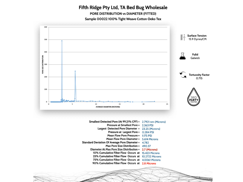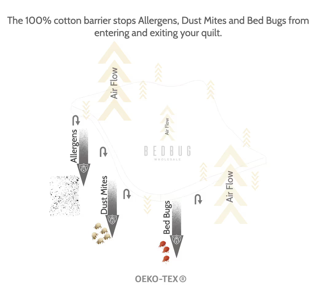 This tightly woven 100% cotton fabric features pore sizes as small as2.79 microns, offering basic particle filtration while maintaining breathability. While it repels larger allergens and debris, it isless effective against microscopic particleslike dust mite allergens and bed bug eggs compared to microporous barriers.